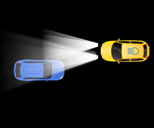 عند التقابل مع مستعمل طريق يستعمل الضوء القوي (ضوء الطريق)